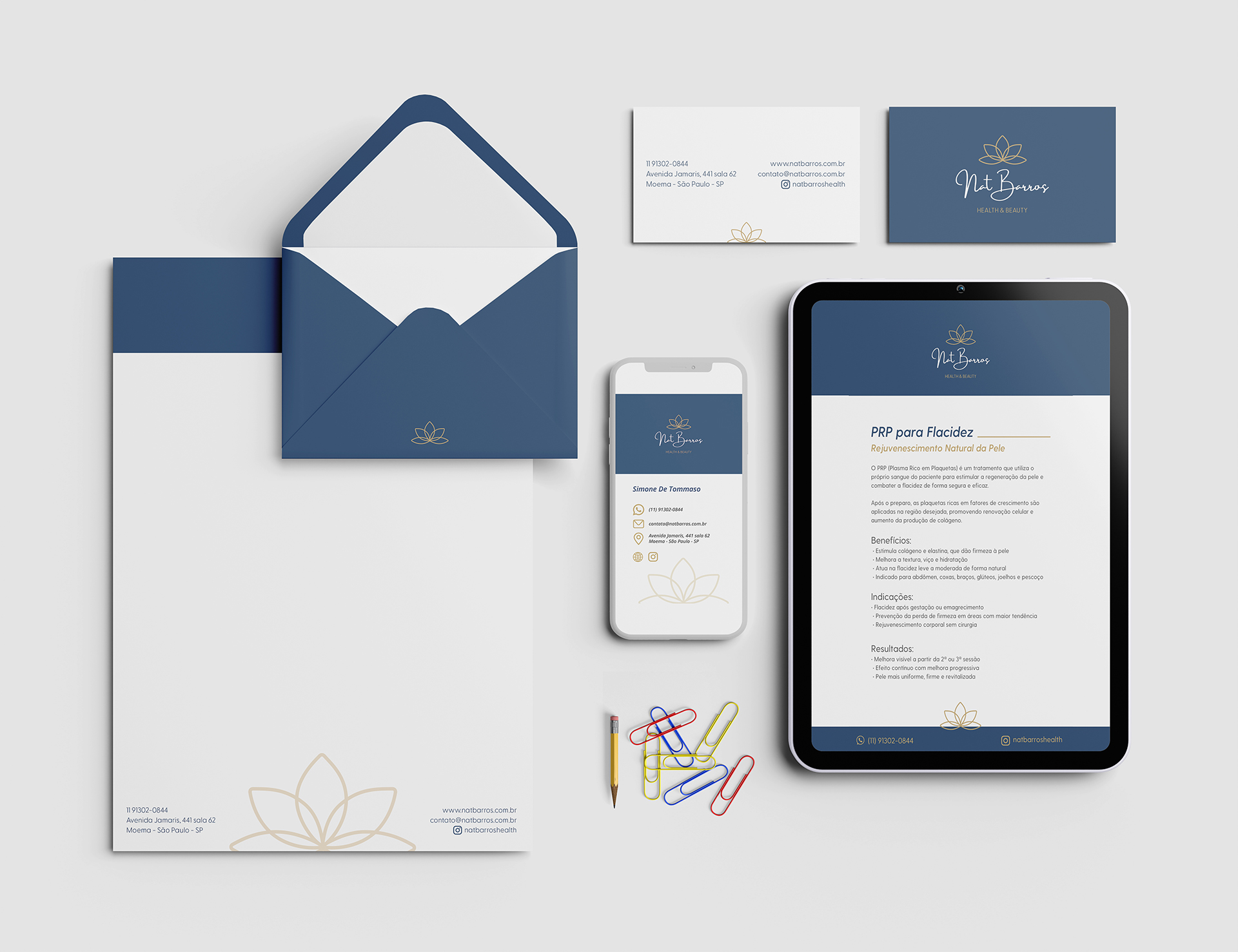 A AD’7 trabalhou na reestruturação da identidade visual da clínica, aplicando uma linguagem visual que refletisse o profissionalismo, a expertise e a sofisticação de sua nova atuação. Todos os pontos de comunicação foram alinhados para transmitir a mensagem correta: a Clínica Dra. Natasha Barros é o espaço ideal para quem busca uma transformação completa e duradoura, com respeito à individualidade de cada cliente.